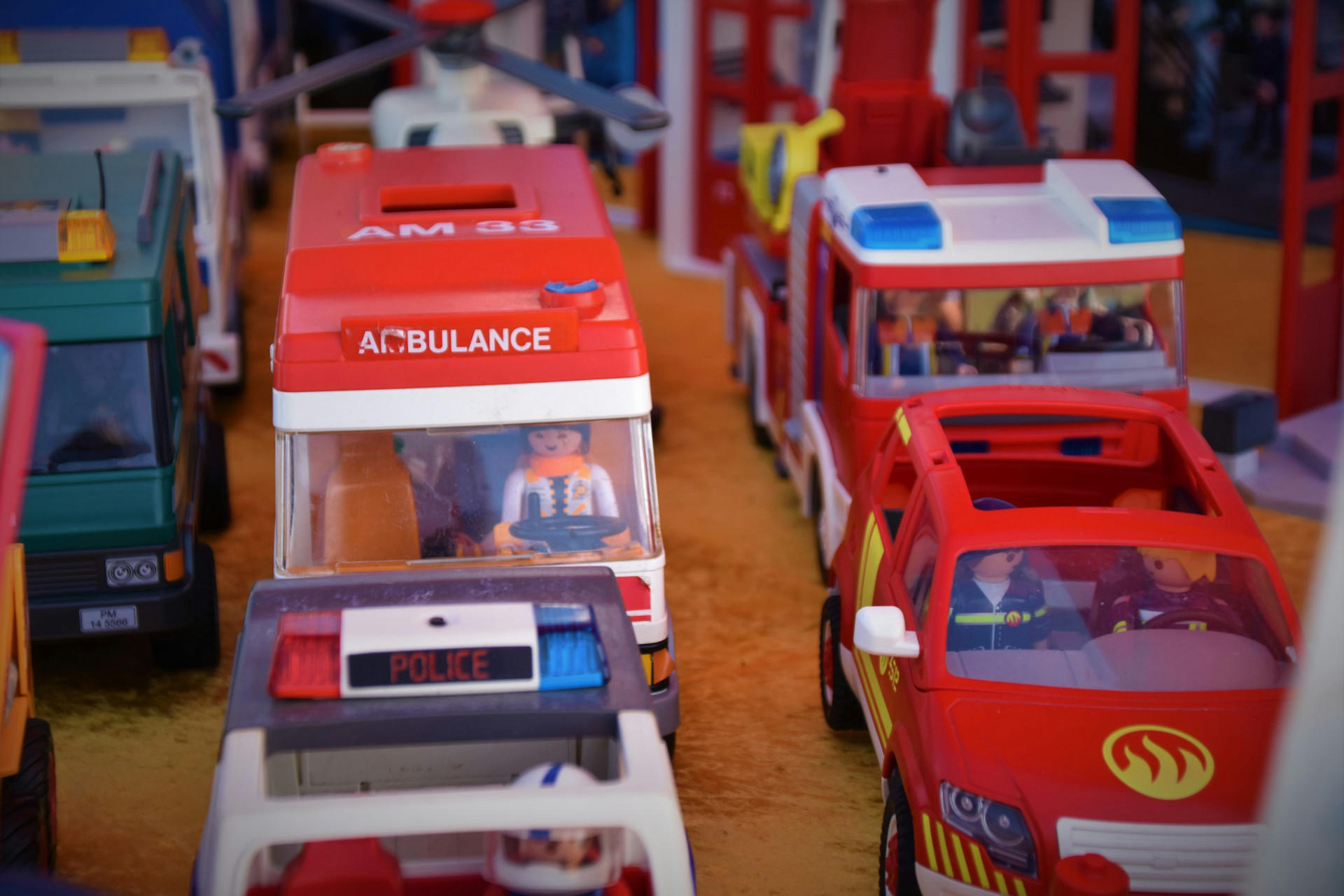 - Flere dele: Indeholder køretøjer og udstyr, der passer til brandmandslegen.